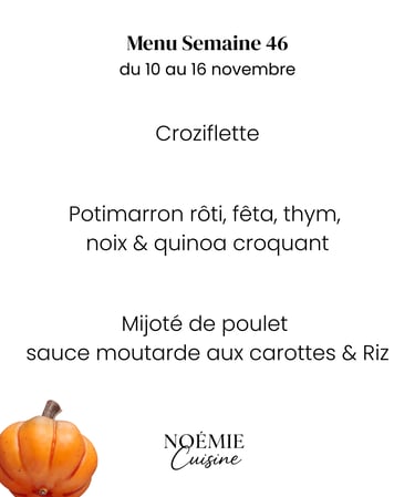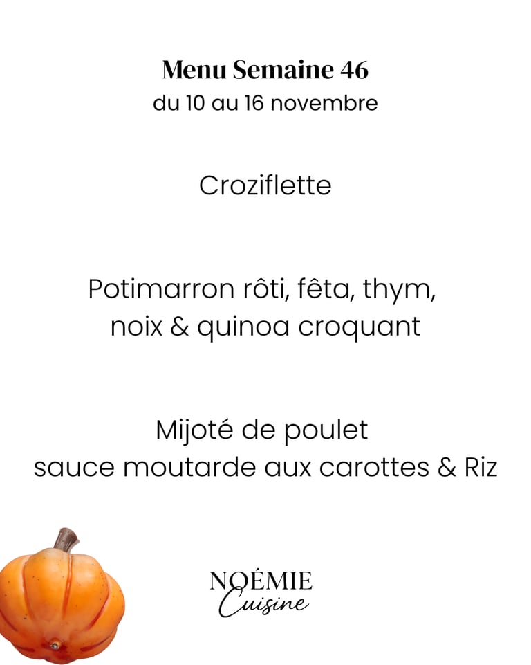 « Cette semaine, je vous propose un trio doudou : la croziflette bien gratinée, le potimarron rôti aux textures croquantes et le poulet moutarde tout doux. De quoi se régaler sans réfléchir au menu ! » 🍂🫶